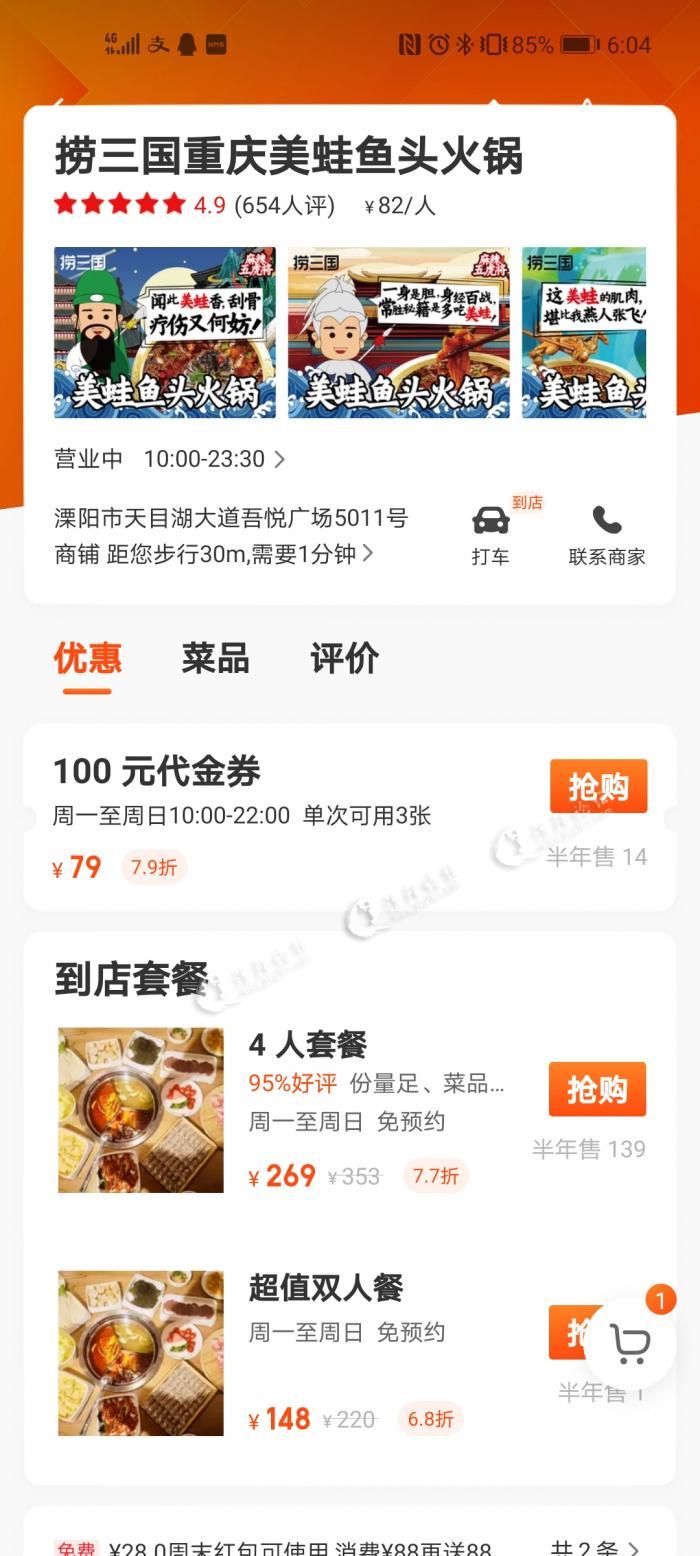 今天联联放券,溧阳五楼捞三国推出套餐99元2~3人。
