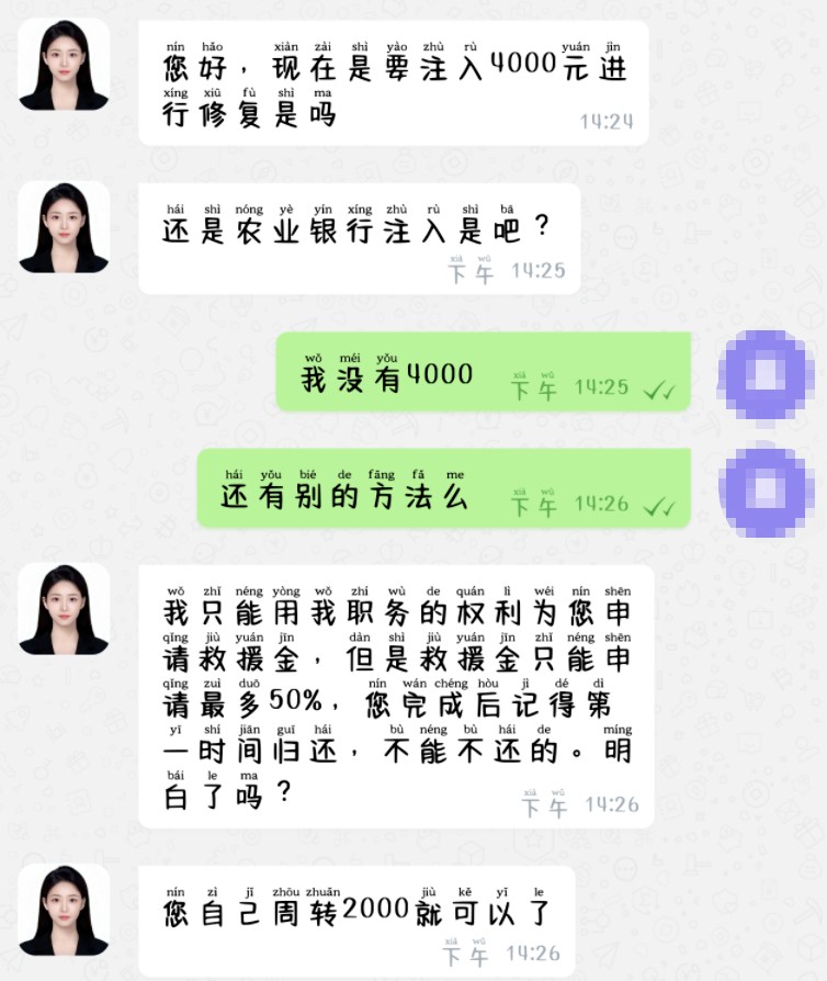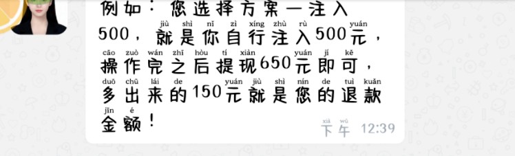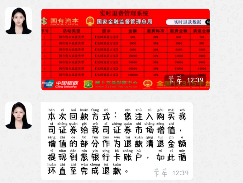 zKNac[: (kSb74*g 小雨第一笔购买了500元的证券,不多久便收到了650元的退款,第二笔仍然购买了500元,但对方却称其操作失误了,需要转账2000元来修复数据,修复完成后才能收到退款。